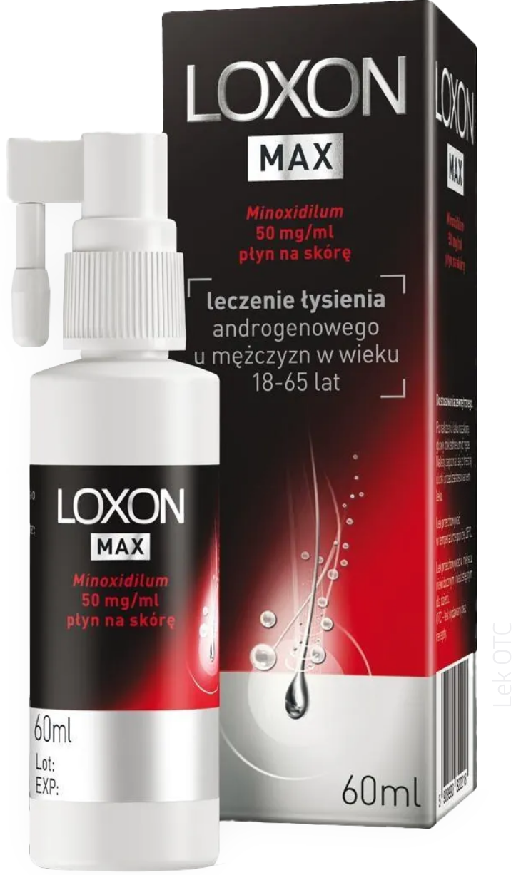 Loxon Max to lek przeciw wypadaniu włosów do wcierania w skórę głowy. Produkt zawiera minoksydyl w stężeniu 5%. Substancja poprawia miejscowe ukrwienie skóry, co sprzyja odżywieniu mieszków włosowych. Minoksydyl hamuje też negatywne oddziaływanie androgenów na mieszki włosowe. Lepsze krążenie, to lepsza kondycja mieszków włosowych, a tym samym także samych włosów1.